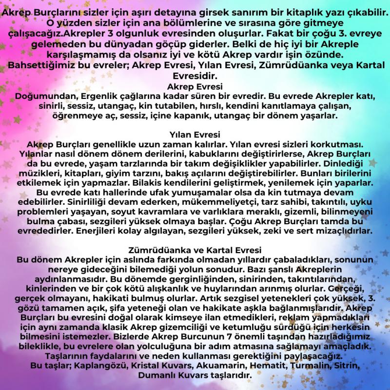 Akrep Burçlarını sizler için aşırı detayına girsek sanırım bir kitaplık yazı çıkabilir. O yüzden sizler için ana bölümlerine ve sırasına göre gitmeye çalışacağız.
