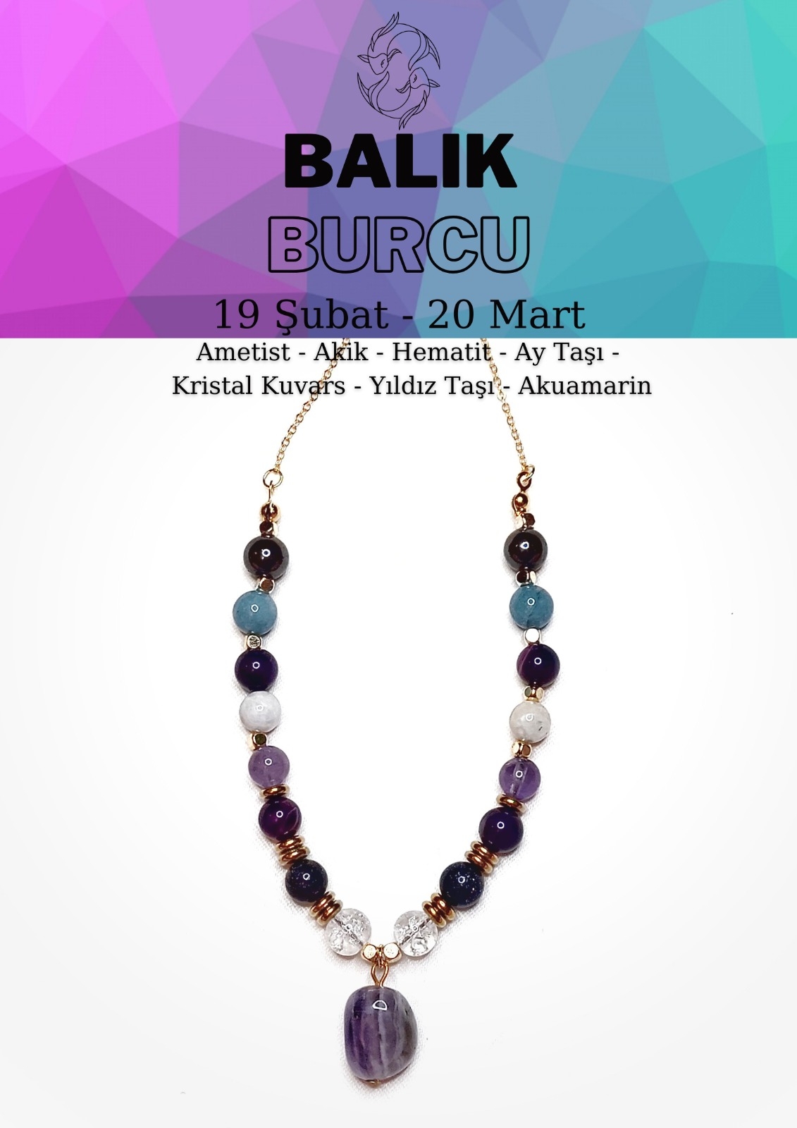 Bizlerde klasik Balık Burcu duygusaldır sadece deyip geçmeyip, sizler için en önemli 7 taşından hazırladığımız bilekliğimizde, taşlarının faydalarını ve neden kullanması gerektiğini sırasıyla açıklayalım.