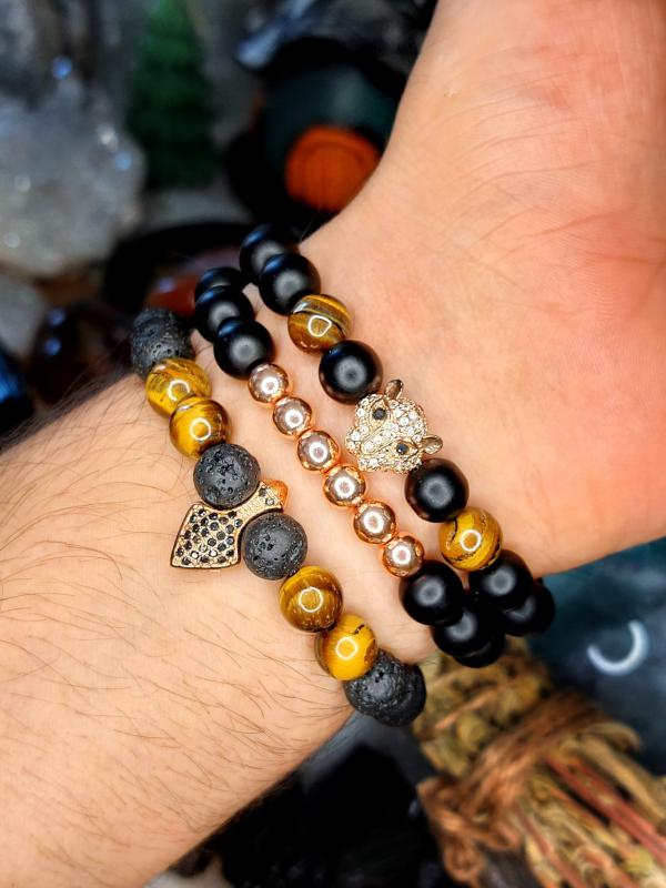 Kaplangözü - Lav Taşı - Oniks ve Hematit Rose 3'lü Erkek Bileklik Kombini